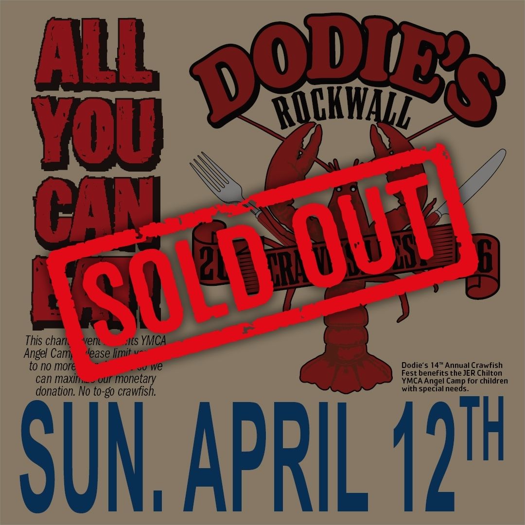 We’re officially sold out for Dodie’s Rockwall Crawfish Fest. Thank you for the incredible support—we can’t wait to see everyone who grabbed tickets on Sunday, April 12!